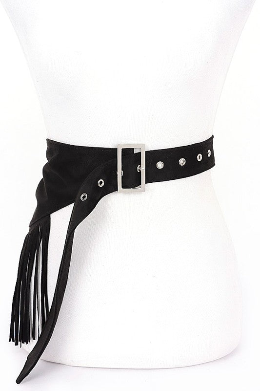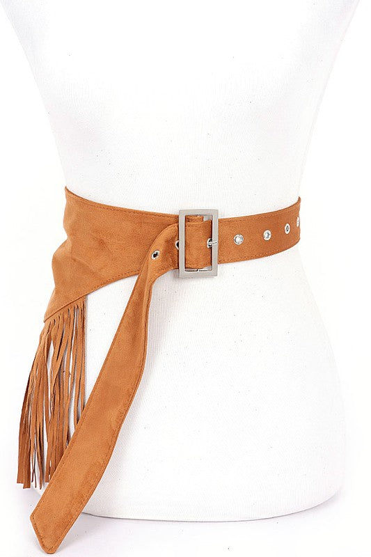 Faux Suede Fringe Western Belt